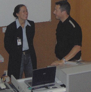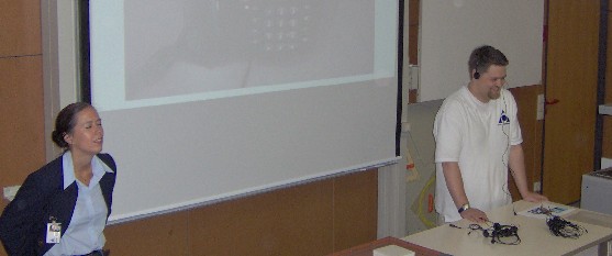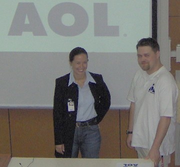 ![]() AOL stellt sich vor. Tanja Neubauer, Personalreferentin bei AOL, und Sebastian Engel, Trainer bei AOL und ehemaliger Schüler der FOS Teleservice, präsentieren die Saarbrücker Niederlassung (inzwischen bereits 550 Arbeitsplätze) des großen Online-Dienstleisters. |