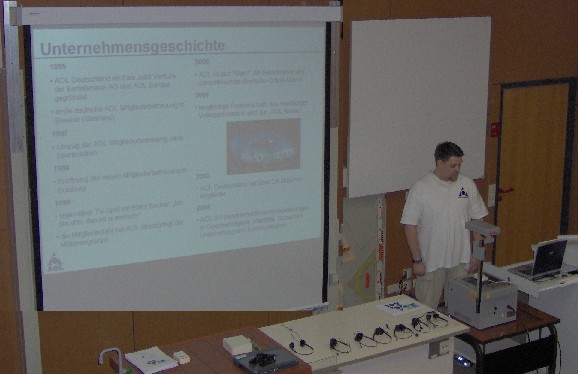 Sebastian Engel lässt die 10jährige Firmengeschichte von AOL in Saarbrücken Revue passieren. |
